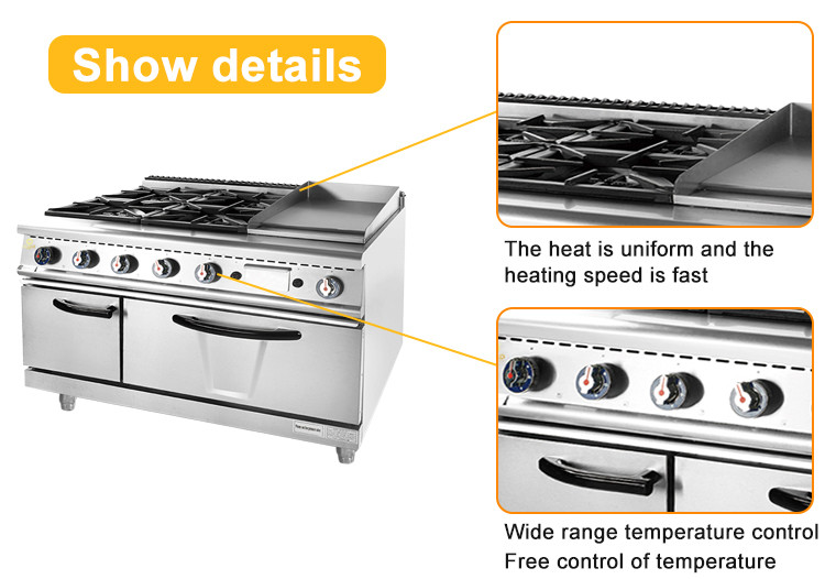 Of je nu hamburgers, biefstukken of andere soorten voedsel kookt, onze restaurant kookapparatuur is de perfecte keuze.zodat je je eten elke keer perfect kunt koken.De krachtige warmteafvoer zorgt ervoor dat uw voedsel snel en efficiënt wordt gekookt, waardoor u tijd en energie bespaart.